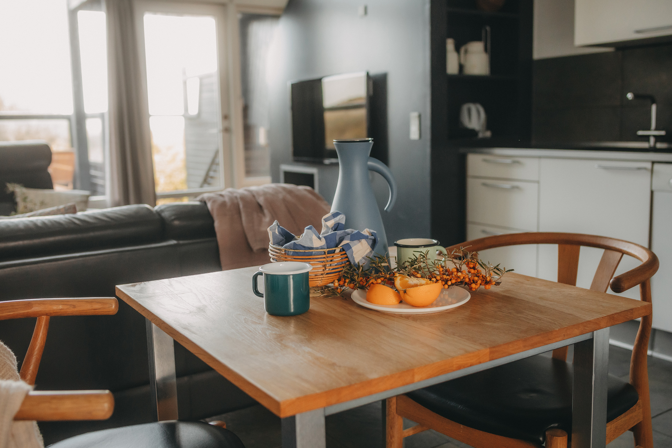 Lejligheden i lækre materialer og med en udsigt i absolut særklasse. Lejligheden er fordelt på 2 plan med stue, køkken og badeværelse i grundplan. Den knitrende brændeovn indbyder til ultimativ nærvær og hygge. Fra sengen på lejlighedens 1. sal er der direkte udsyn til Vesterhavet. Her er rig mulighed for at nyde solnedgangen, som også kan nydes uforstyrret fra lejlighedens altan.